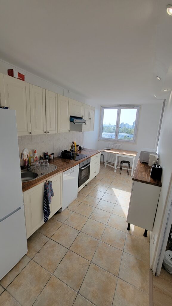 Notre cuisine, véritable cœur de l’appartement, est à la fois grande et conviviale. Équipée d’appareils électroménagers modernes et neufs (acheté en octobre 2023), elle offre un espace idéal pour cuisiner ensemble, partager des repas, apéros, et moments conviviaux.