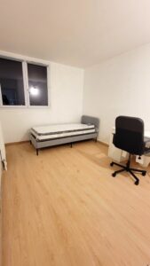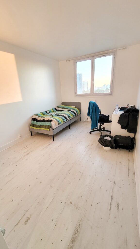 Dotée d’un lit neuf, d’un matelas neuf, d’un placard spacieux, d’un bureau moderne et d’un fauteuil confortable, cette chambre est une véritable oasis de tranquillité que vous pourrez personnaliser à votre goût.