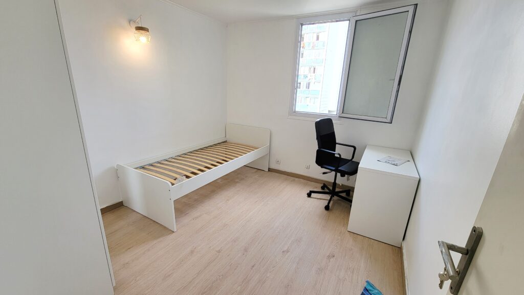 Découvrez l’élégance de cette chambre soigneusement aménagée. Dotée d’un lit neuf, d’un matelas neuf, d’un placard organisé, d’un bureau moderne et d’un fauteuil confortable, cette chambre constitue un espace idéal pour travailler et se détendre.